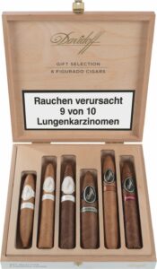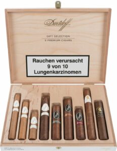 Diese erlesene Robusto-Auswahl von Davidoff-Bestsellern wird in einem stilvollen, modernen Holzkistchen präsentiert und ist das perfekte Geschenk für jeden Aficionado. Enthalten sind je eine der folgenden Zigarren: Davidoff Aniversario Special «R», Escurio Robusto, Nicaragua Robusto, Yamasá Robusto und Winston Churchill Robusto.
