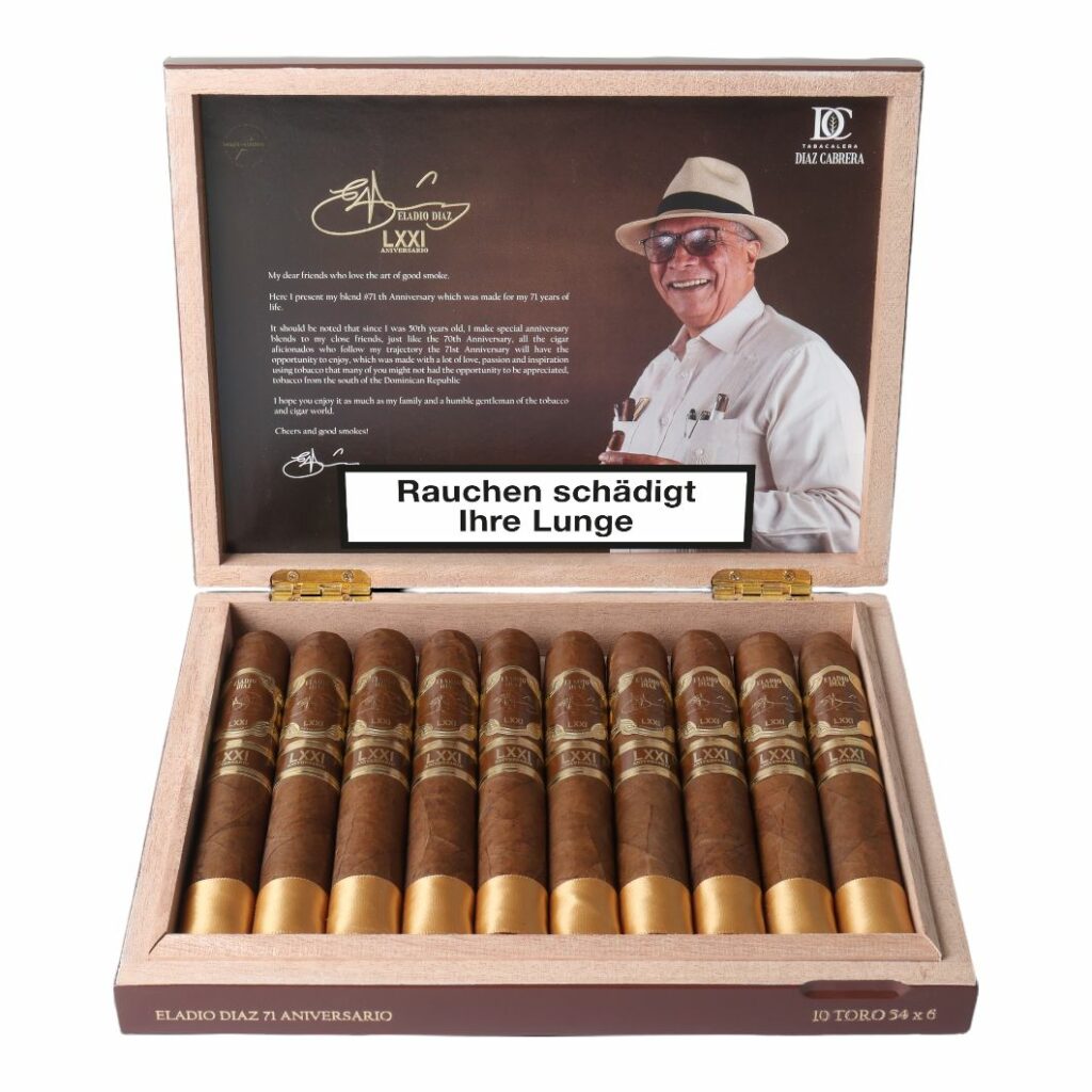 Tabaklegende Eladio Diaz feiert seinen 71. Geburtstag. Und erneut lässt er uns in Form eines eigens kreierten Geburtstagsblends daran teilhaben. Zum 71. hat er keine Mühe gescheut und, laut eigener Aussage in einer Pressemitteilung, eine der besten Mischungen, die er je entwickelt hat, geschaffen. Es sei, als ob der Zigarrenraucher sich in eine andere Dimension begebe, um mit den Göttern zu sprechen und himmlischer Musik zu lauschen.