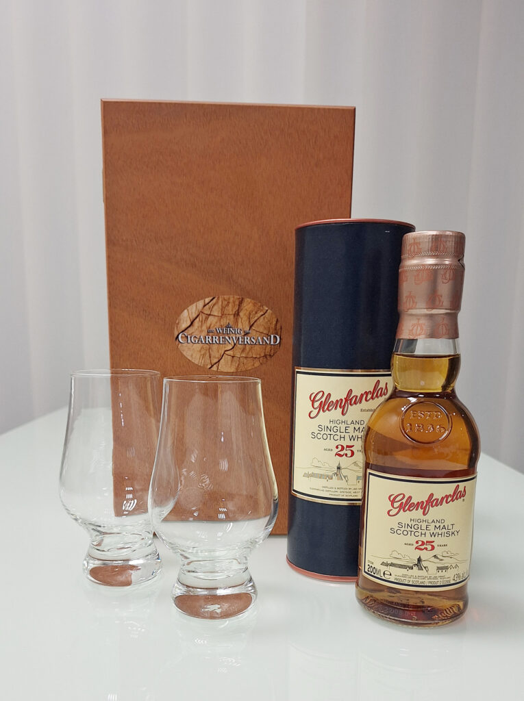 Geschenkbox „Glenfarclas 25 Jahre 200ml“ mit 2 Gläsern