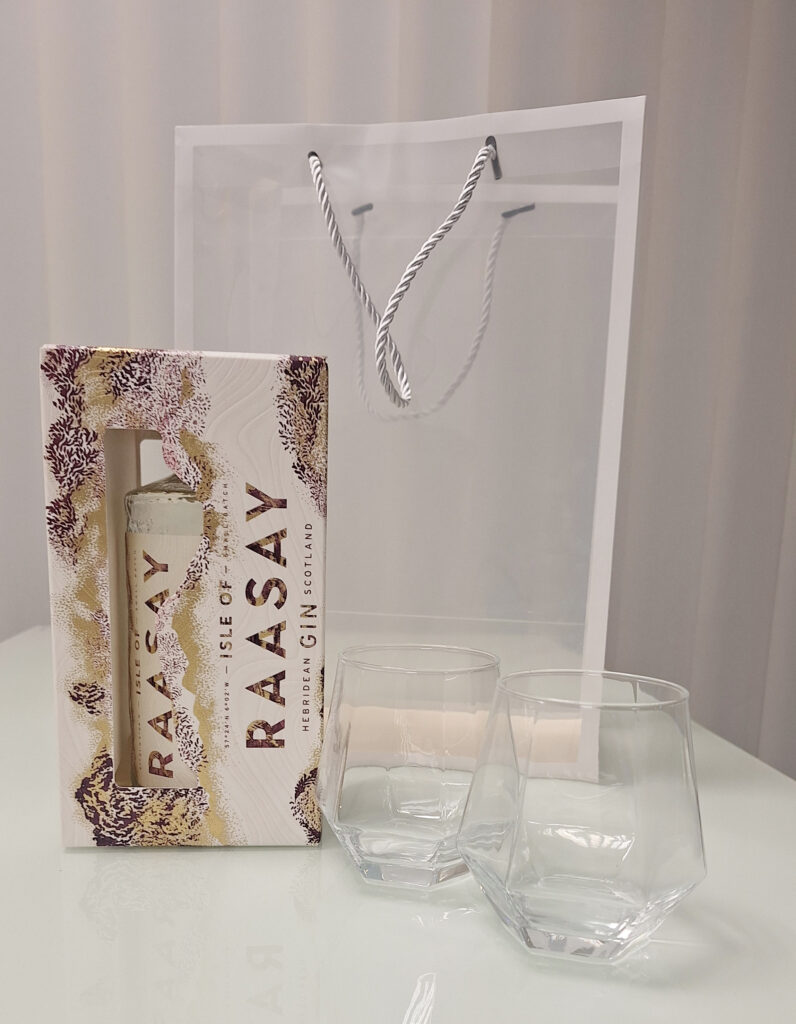 Geschenktasche „Isle of Raasay Gin“ mit 2 Gläsern