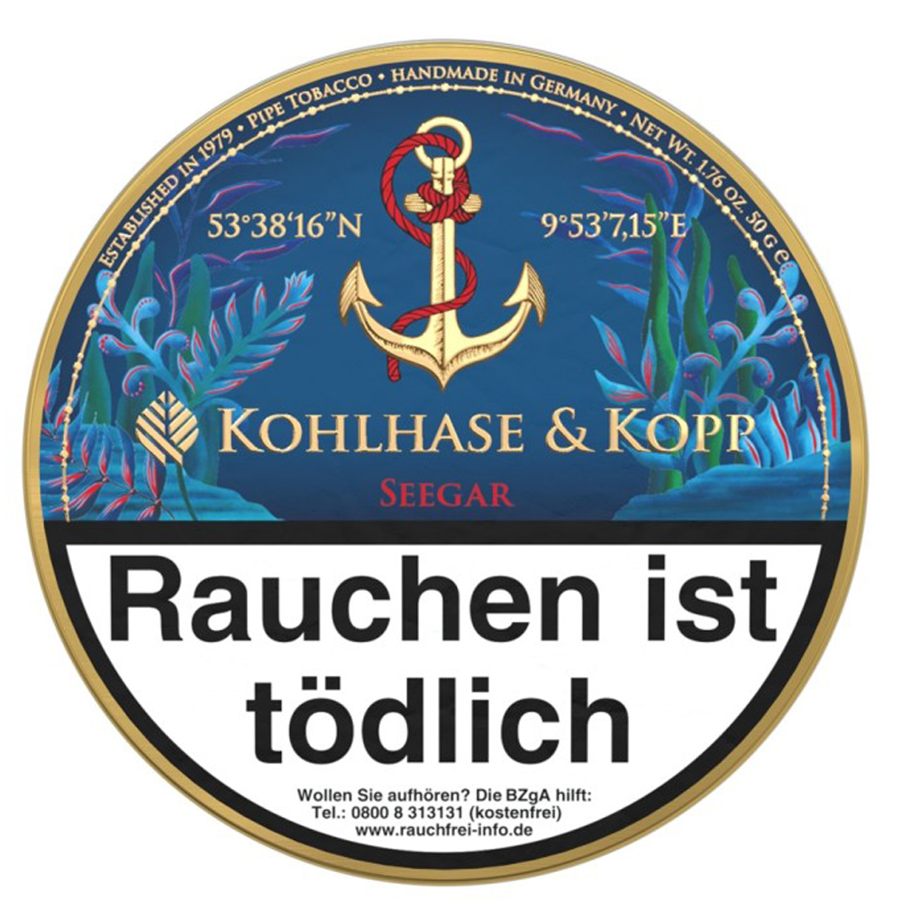 Der Kohlhase & Kopp Caribbean Blue Seegar Pfeifentabak - ist ein außergewöhnlicher Pfeifentabak mit karibischem Flair und würziger Tiefe. Die Mischung aus goldenem Virginia, Black und Brown Cavendish wird mit cremiger Tonkabohne, frischen Zitrusnoten, einem Hauch Karamell und einem Schuss Rum verfeinert. Eine Prise Latakia sorgt für einen angenehm würzigen Kick – dezent eingesetzt und perfekt eingebunden. So entsteht ein mittelkräftiger Hocharomat mit Charakter und exotischem Charme. Ein individueller Genuss für alle, die das Besondere suchen.