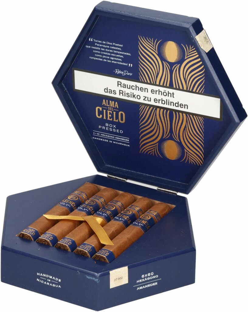 Plasencia Alma del Cielo Amanecer Hexagono – eine himmlische Erweiterung des beliebten Alma-del-Sortiments. Diese besondere Zigarre verdankt ihren Charakter einem außergewöhnlichen Tabak, der auf über 1.000 Metern über dem Meeresspiegel kultiviert wird. In dieser Höhenlage gedeiht der Tabak auf äußerst fruchtbarem Boden, gespeist von reinem Quellwasser aus den umliegenden Bergen – eine Seltenheit, die sich direkt im Geschmack widerspiegelt. Und wie schmeckt das? Fruchtig-frisch mit einer angenehmen, ausgewogenen Würze. Sanfte Creme-Noten runden das Profil harmonisch ab. Das Ergebnis ist ein neuer, fein abgestimmter Blend, der in der Stärke maximal mittel bleibt – und zweifellos zu den milderen Kreationen aus dem Hause Plasencia zählt.