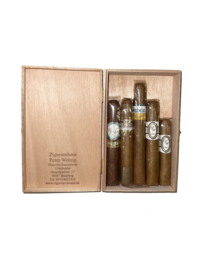 Unser Sampler ist eine hervorragende Möglichkeit für Zigarrenliebhaber, die Vielfalt und Qualität unserer Hausmarke zu entdecken. Er bietet eine handverlesene Auswahl an Zigarren, die exklusiv für uns produziert werden und ein ausgezeichnetes Preis-Leistungs-Verhältnis bieten.