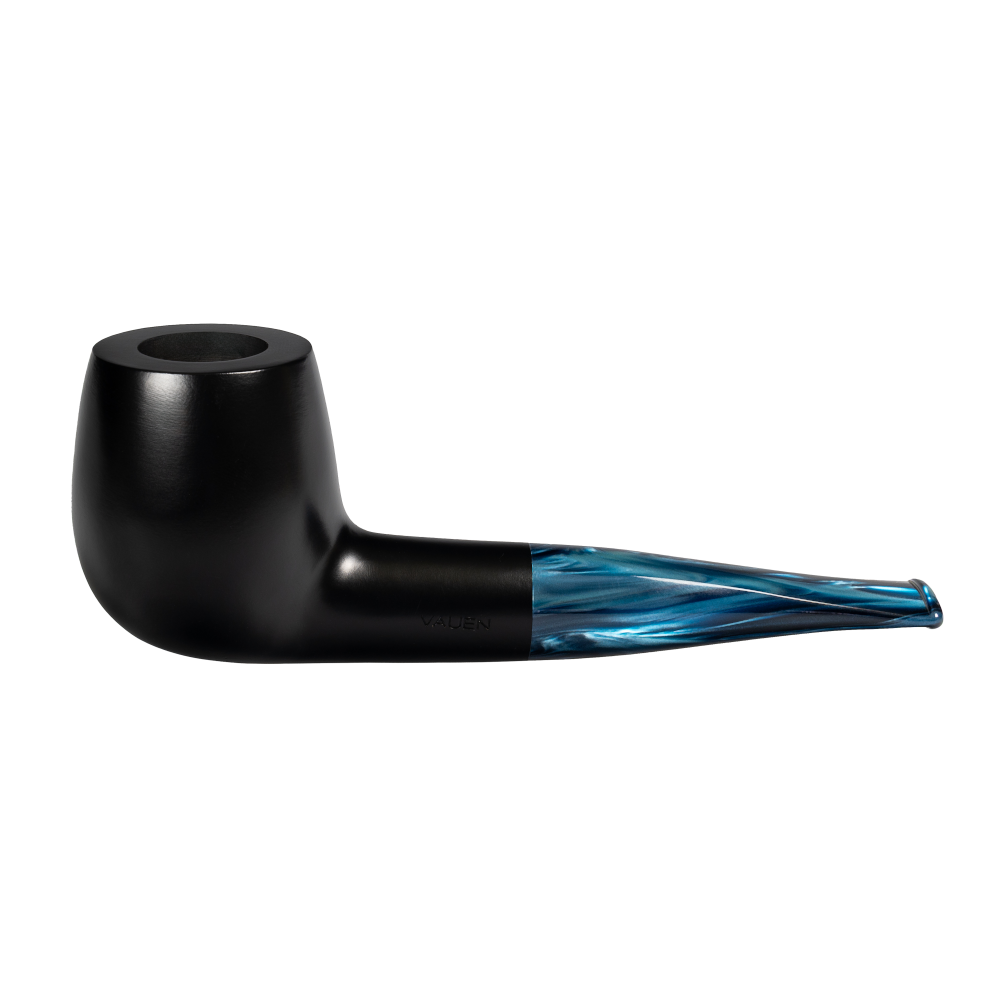 Die seidenmatte, schwarze Oberfläche der „Ray“ reduziert die Formensprache der sechs Kopfformen bewusst auf das Wesentliche und lenkt den Blick auf das blau schimmernde Acrylmundstück. Dieses offenbart bei Bewegung feine Farbnuancen und sorgt so für einen echten „Wow-Effekt“. Die „Ray“ richtet sich an Pfeifenliebhaber, die ruhiges Design, präzise Verarbeitung und subtile Akzente zu schätzen wissen.