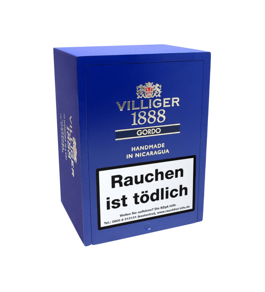 Die erste eigene Handmade Zigarre aus dem Hause VILLIGER zollt dem Gründungsjahr des Unternehmens Tribut: die VILLIGER 1888. Innerhalb dieser Linie überzeugen auch diese hervorragenden Zigarren. VILLIGER 1888 Nicaragua - ein Stern am Zigarrenhimmel! Die dunkelblauen 20er Cabinett-Kisten sind der absolute Blickfang in jedem Humidor. Mittelkräftige Tabake, die ein angenehm aromatisches Raucherlebnis bieten, mit dezenten Aromen von Leder und Pfeffer, überzeugen hier jeden Aficionado. Der wohlige Geschmack mit Anklängen von Schokolade und Honig rundet das Ganze perfekt ab.
