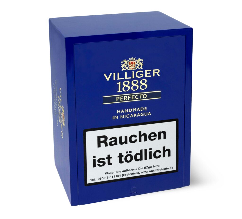 Die dunkelblauen 20er Cabinett-Kisten sind der absolute Blickfang in jedem Humidor. Mittelkräftige Tabake, die ein angenehm aromatisches Raucherlebnis bieten, mit dezenten Aromen von Leder und Pfeffer, überzeugen hier jeden Aficionado. Der wohlige Geschmack mit Anklängen von Schokolade und Honig rundet das Ganze perfekt ab.  Eindrucksvoll stellt die Perfecto unter Beweis, welch handwerkliche Meisterwerke in der Galera von VILLIGER de Nicaragua vollbracht werden.