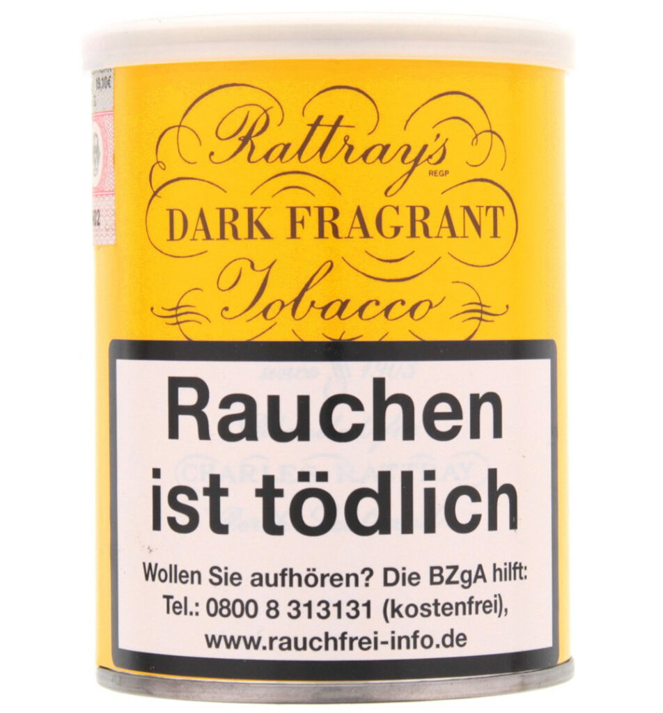 Der Rattray's British Collection Dark Fragrant Pfeifentabak - ist ein außergewöhnlicher Tabak, der mit einer harmonischen Mischung aus pechschwarzem Cavendish und würzigem Perique begeistert. Trotz seiner dunklen Farbe ist dieser Tabak überraschend sanft im Geschmack und bietet ein faszinierendes, vollmundiges Raucherlebnis. Die sorgfältige Durchröstung sorgt für ein langsames, gleichmäßiges Abbrennen, das den Genuss noch verlängert. Der vollmundige Virginia-Black Cavendish verbindet sich mit der pfeffrigen Würze des Perique zu einem charaktervollen Smoke, der an die legendären "Stoved Virginias" erinnert. Er ist ideal für Pfeifenliebhaber, die nach einzigartigen, kräftigen Tabaken suchen, die im Gedächtnis bleiben. Mit dem Rattray's Dark Fragrant erleben Sie einen vollmundigen, abendfüllenden Genuss!